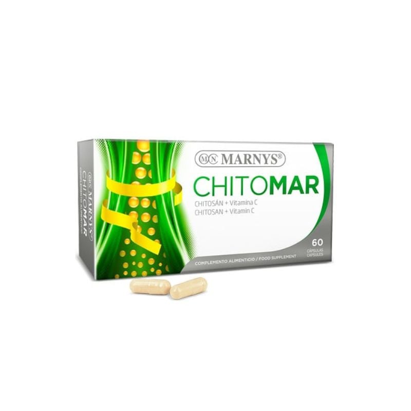 CHITOMAR din gama MARNYS® este un Supliment Special Creat pentru Eliminarea Grasimilor din corp. Contribuie in acelasi timp la Reglarea Colesterolului si a Trigliceridelor si la Protejarea Functiei Renale, alaturi de multe alte beneficii conexe. Contine Chitosan din Chitina extrasa din crustacee si sintetizata prin procedee revolutionare, fiind imbogatit cu Vitamina C. Produs in Spania la cele mai Inalte Standarde GMP.