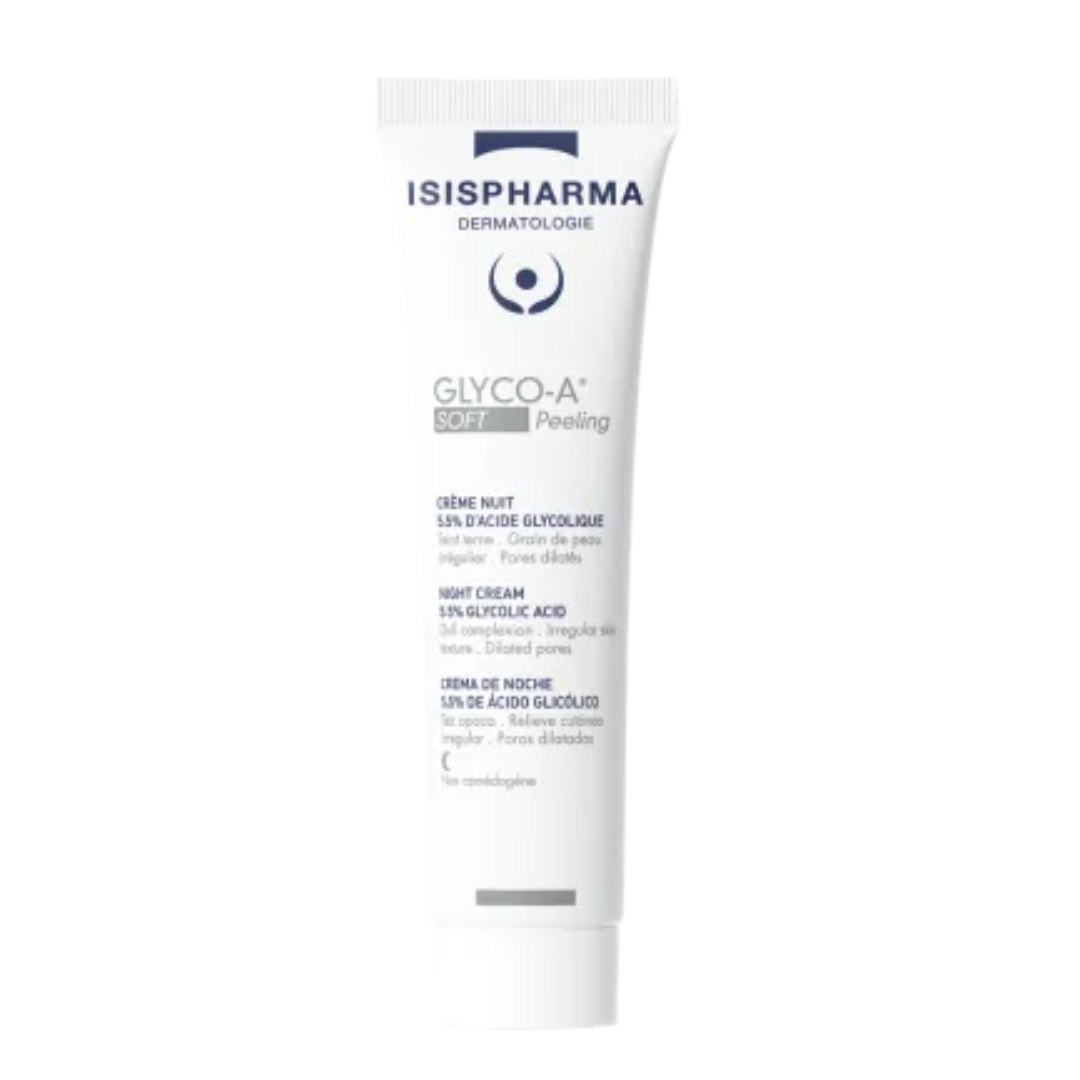 Glyco-A Soft Peeling 5.5% este o cremă de noapte care conține acid glicolic, un ingredient activ cunoscut pentru proprietățile sale exfoliante. Aceasta ajută la îndepărtarea celulelor moarte de la suprafața pielii, facilitând astfel regenerarea acesteia.