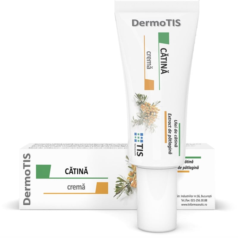 DermoTIS CATINA protejeaza in mod eficient pielea contra radiatiilor UV si a factorilor externi.Ingrediente:extract uleios din catina, extract din patlagina.Extractul uleios din catina, bogat in vitamine (provitamina A) si β-caroten, recomanda produsul pentru emolierea pielii uscate, predispusa la imbatranire, are actiune trofica asupra tesuturilor si regeneranta asupra tegumentelor.