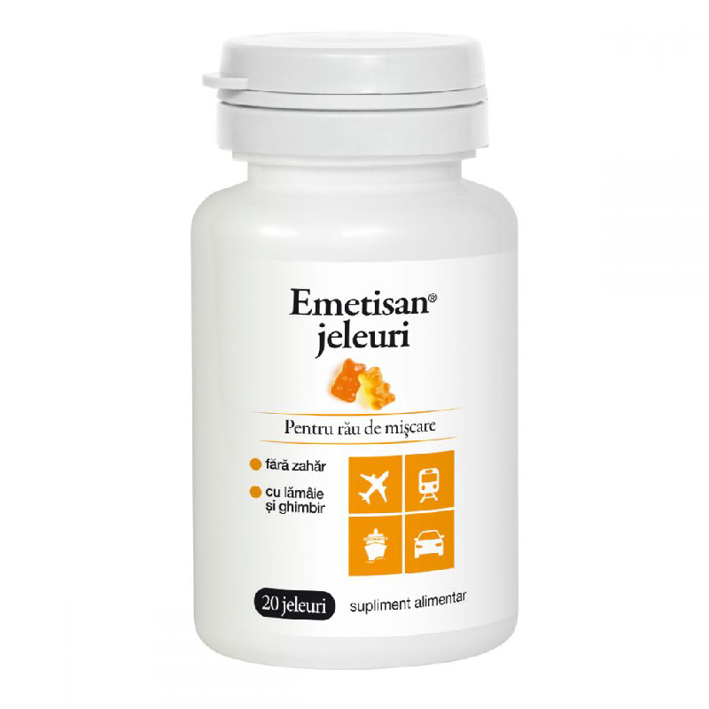 1. Ce este Emetisan? Emetisan este un supliment alimentar pe bază de ghimbir, sub formă de jeleuri, destinat prevenirii răului de mișcare.