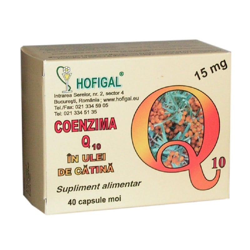 Hofigal Coenzima Q10 in Ulei de Catina 15 mg, 40 capsule, Vitamine si suplimente > Vitamine si suplimente > Cardio > Inima sanatoasa