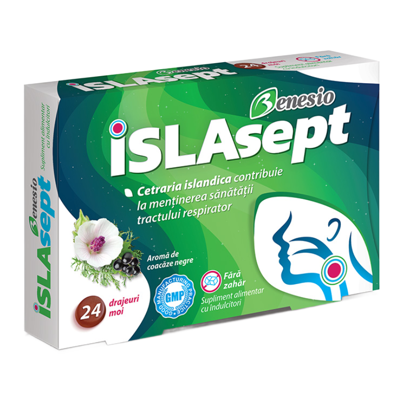 Islasept, 24 drajeuri moi, Benesio, Vitamine si suplimente > Vitamine si suplimente > Raceala si gripa > Vitamine si suplimente > Imunitate forte > Vitamine si suplimente > Raceala si gripa > Durere in gat > Vitamine si suplimente > Raceala si gripa > Sanatatea tractului respirator