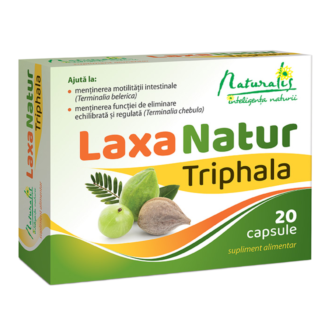 Naturalis Laxanatur Triphala este un supliment alimentar sub formă de capsule care conțin extract Triphala – o combinație de extracte din fructe de Emblica officinalis/Phyllanthus emblica, Terminalia bellirica și Terminalia chebula.