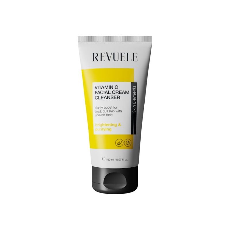 REVUELE Lotiune curatare fata cu Vitamina C are o formula cremoasa cu spuma redusa ce indeparteaza delicat machiajul, sebumul si murdaria fara a perturba bariera naturala a pielii.