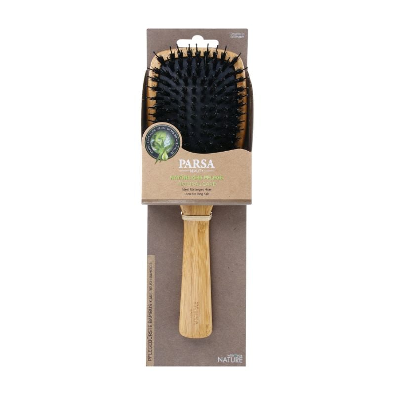 Peria de păr mare din lemn de bambus cu peri miști de la Parsa este un instrument esențial pentru îngrijirea părului. Aceasta nu doar că descurcă părul, dar și protejează scalpul, oferind o experiență plăcută în timpul utilizării. Datorită materialelor de calitate, peria este durabilă și prietenoasă cu mediul.