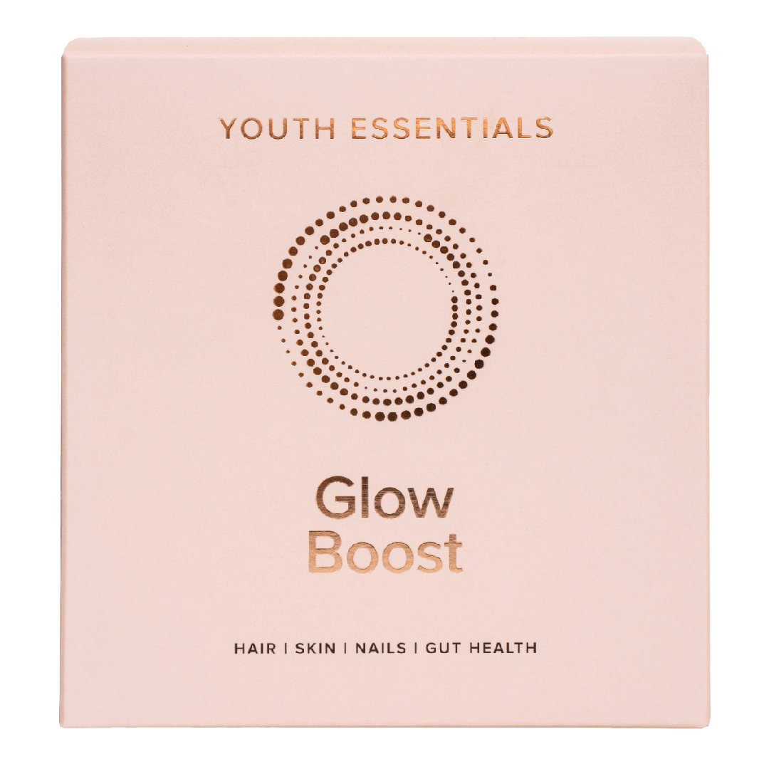 Glow Boost de la Youth Essentials este o pudră cu colagen hidrolizat, îmbogățită cu vitamine și antioxidanți, care contribuie la menținerea elasticității pielii, a sănătății părului și unghiilor, pentru un aspect vizibil revitalizat din interior.
