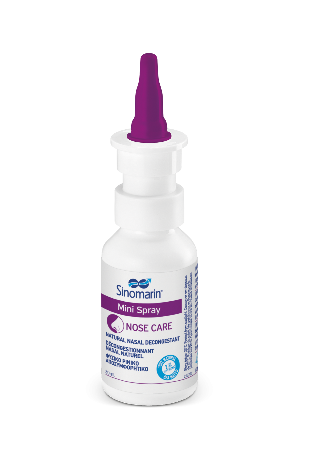 Sinomarin® Mini SprayAMELIOREAZA CONGESTIA NAZALACURATA SI HIDRATEAZASinomarin®Mini Spray este un decongestionant nazal 100% natural, dovedit clinic. Este o solutie hipertonica de apa de mare (2,3% NaCl) bogata in ingrediente benefice ale marii (saruri minerale si oligoelemente). Sinomarin®Mini Spray amelioreaza congestia nazala si presiunea sinusurilor, prin intermediul mecanismului natural de osmoza. Ajuta la curatarea si hidratarea cavitatilor nazale.Descriere: flacon de 30 ml cu pompa nazala. Pulverizare cu doza masurata, pentru adulti, copii si sugari de peste 6 luni, cu aplicator nazal anatomic proiectat, fara conservanti.Compozitie: Apa de mare 70%, 30% apa purificata, echivalentul a 23 g / l NaCl (2,3%).Fara conservanti. Fara medicamente. Fara aditivi chimici. 100% natural.Doza recomandata: 1-3 pufuri in fiecare nara, de 2 pana la 3 ori pe zi, sau conform instructiunilor medicului.Nu au fost raportate efecte secundare la utilizarea de Sinomarin®Mini Spray.Potrivit pe timpul sarcinii si alaptarii.Sinomarin®Mini Spray poate fi utilizat singur, sau in combinatie cu alte decongestionante medicamentoase.Sugari & copii care au nevoie de asistenta1.Tineti flaconul in pozitie verticala si pulverizati de cateva ori pentru a activa pompa de pulverizare.2.Stergeti nasul copilului inainte de a utiliza Sinomarin®.3.Indepartati capacul de protectie.4.Asezati copilul in pozitia culcat pe spate cu capul intors spre dreapta.5.Introduceti usor aplicatorul in nara stanga, paralel cu nasul si apasati ferm.6.Intoarceti capul in partea opusa si repetati aplicarea in cealalta nara.7.Scoateti pulverizatorul din nara copilului, ridicati copilul in pozitie verticala, lasati solutia sa actioneze timp de cateva secunde si apoi stergeti-i nasul sau folositi un aspirator nazal pentru a elimina mucusul.8.Repetati procedura daca este necesar.9.Spalati aplicatorul bine cu apa calda si stergeti dupa fiecare utilizare.