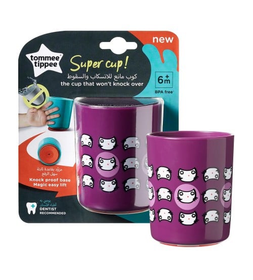 TOMMEE TIPPEE Cana No Knock Small 190ml, 6luni+, Pisicute mov, Mama si copilul > Mama si copilul > Bebe la masa > Mama si copilul > Bebe la masa > Accesorii hrana bebe