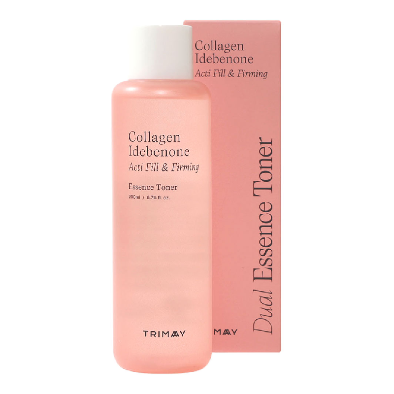 Tonerul pentru elasticitatea pielii Trimay Collagen Idebenone Acti Fill & Firming Essence Toner are o compozitie pe baza de 81% colagen hidrolizat, ceea ce o face eficienta in revitalizarea pielii si are efect anti-imbatranire. Efectul este sporit de continutul de componente anti-imbatranire precum idebenona, adenozina si un complex de extracte naturale care ajuta la netezirea ridurilor si la cresterea elasticitatii si fermitatii pielii.