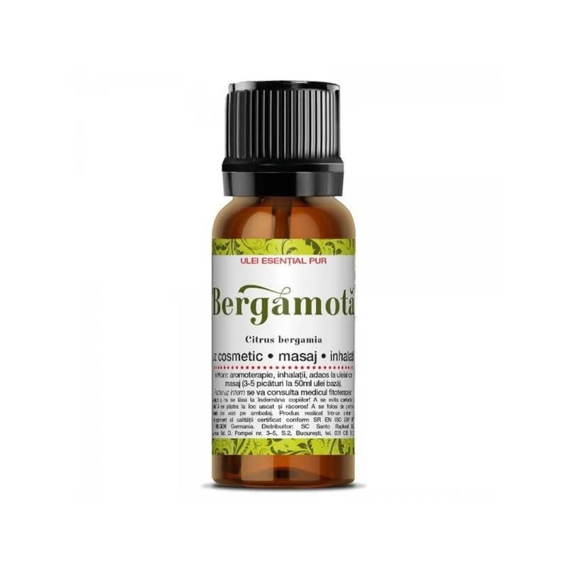 Uleiul esențial de bergamotă este extras din coaja fructului Citrus bergamia. Este cunoscut pentru aroma sa citrică, care poate îmbunătăți atmosfera din orice spațiu. De asemenea, are proprietăți antimicrobiene și antiinflamatorii, fiind ideal pentru diverse aplicații terapeutice.