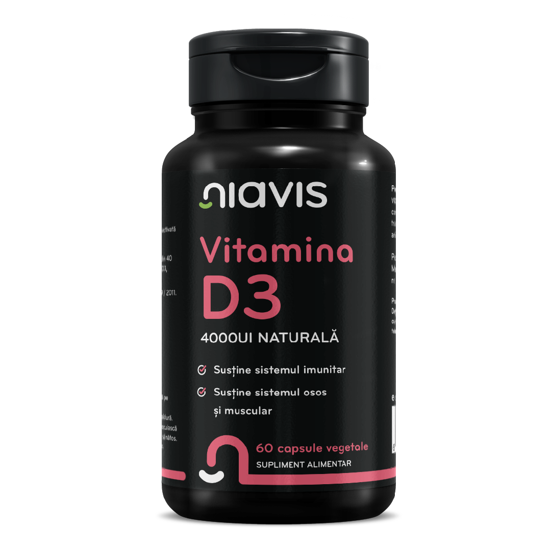 Vitamina D3 4000 Natural, 60 capsule, Niavis, Vitamine si suplimente > Vitamine si suplimente > Vitamine si minerale > Vitamine si suplimente > Imunitate forte > Vitamine si suplimente > Articulatii > oase si muschi > Vitamine si suplimente > Vitamine si minerale > Vitamina D