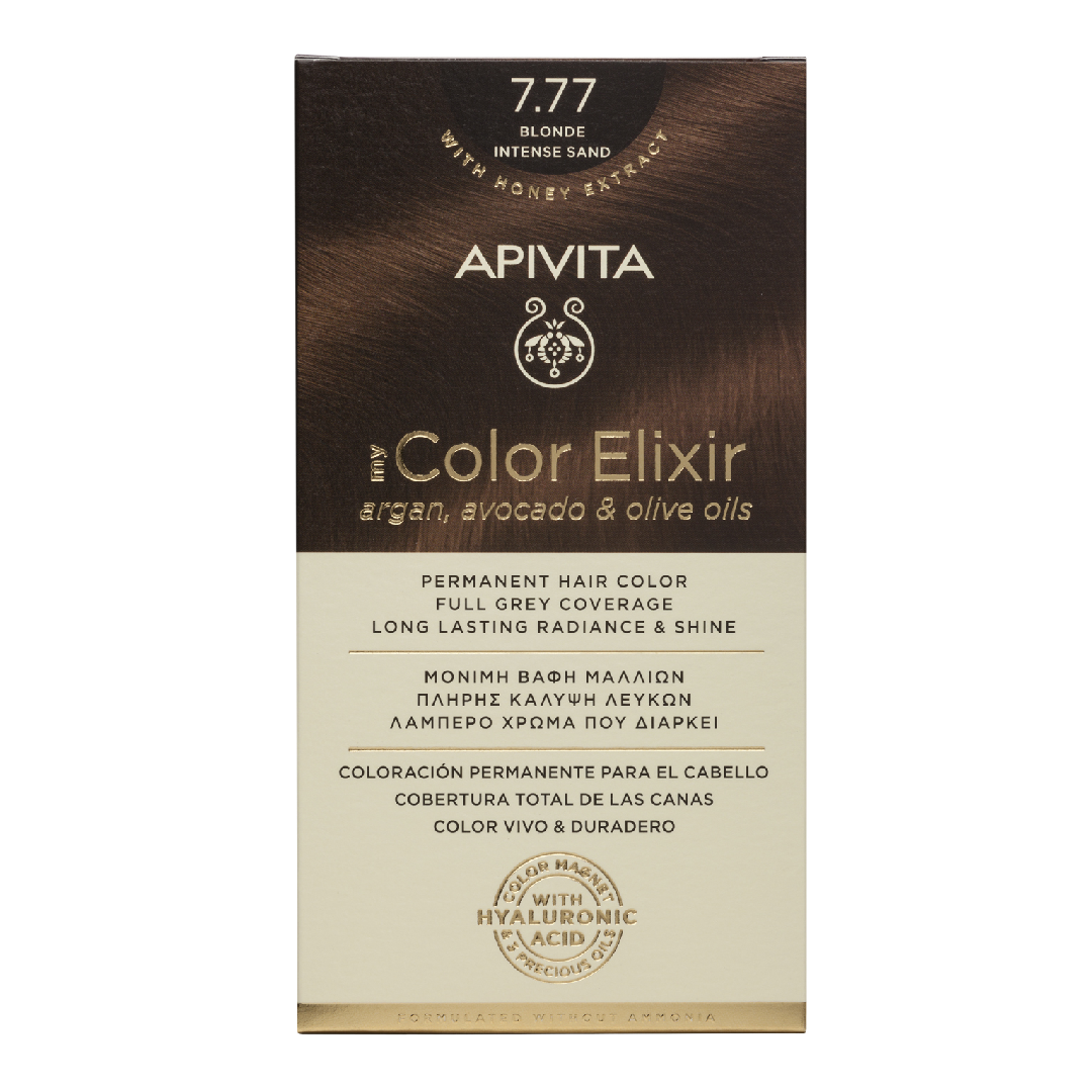 Vopsea de par My Color Elixir Blonde Intense Sand 7.77, 155 ml, Apivita, APIVITA