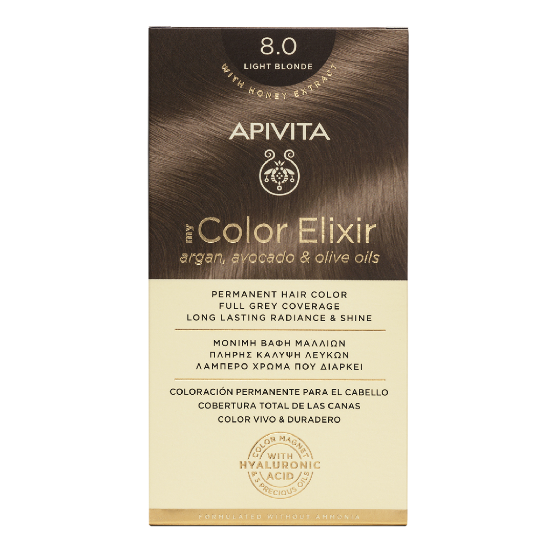 Vopsea de par My Color Elixir, Light Blonde N8.0, 155 ml, Apivita, APIVITA