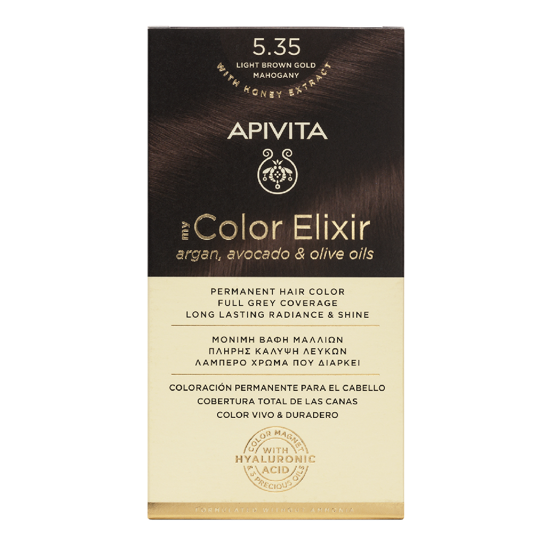 Vopsea de par My Color Elixir, Light Brown Gold Mahogany N5.35, N5.35 ml, Apivita, APIVITA